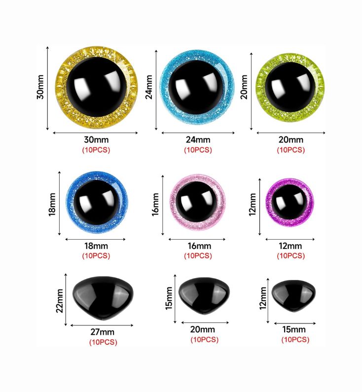 ❄The packaging includes: 60 different sizes doll eyes and 30 black nose.