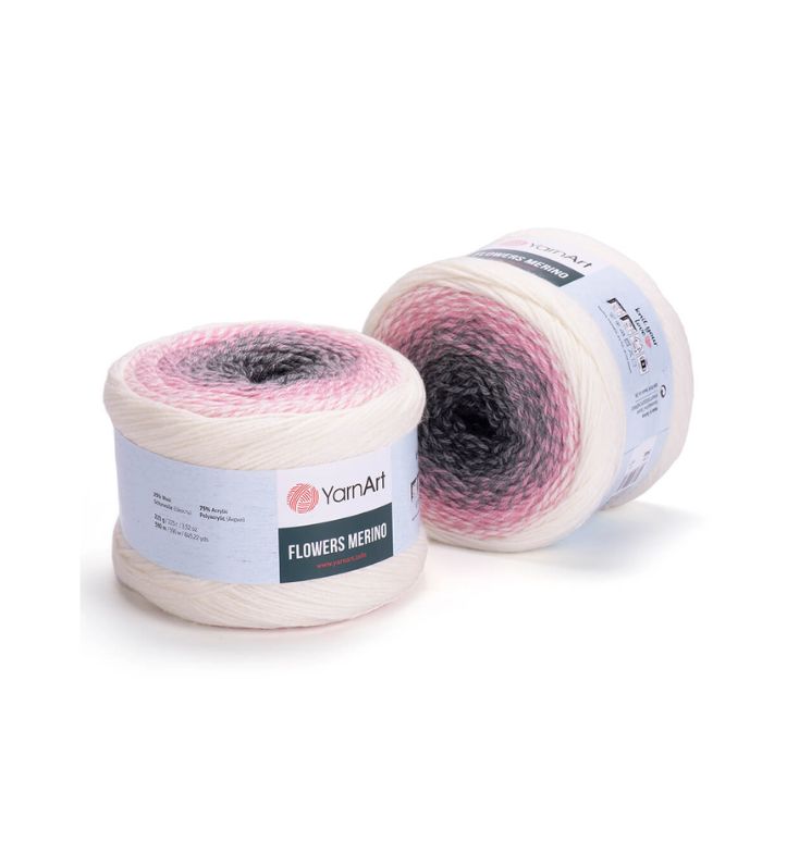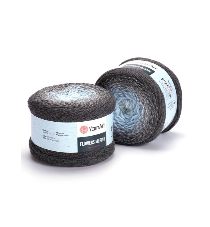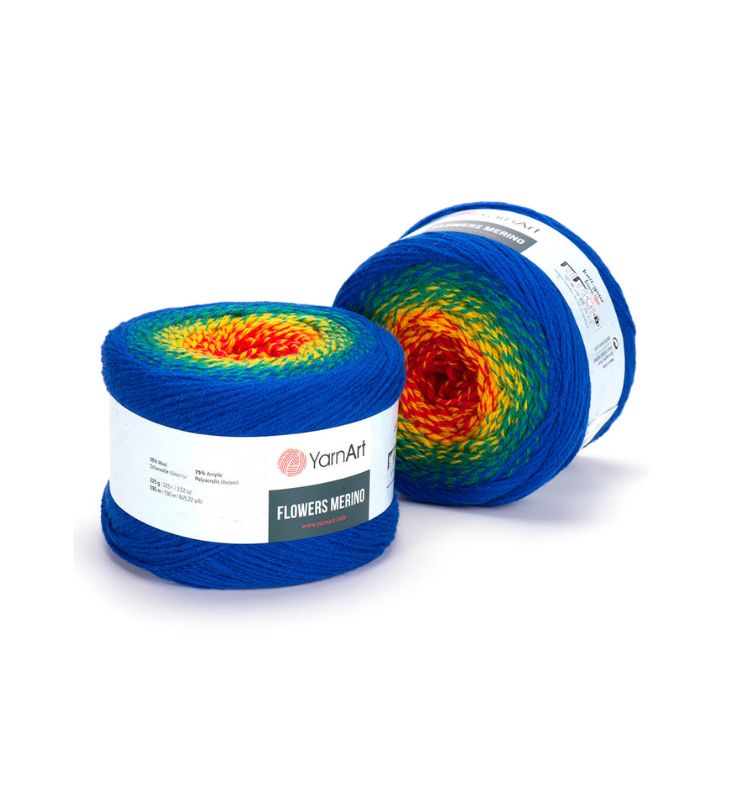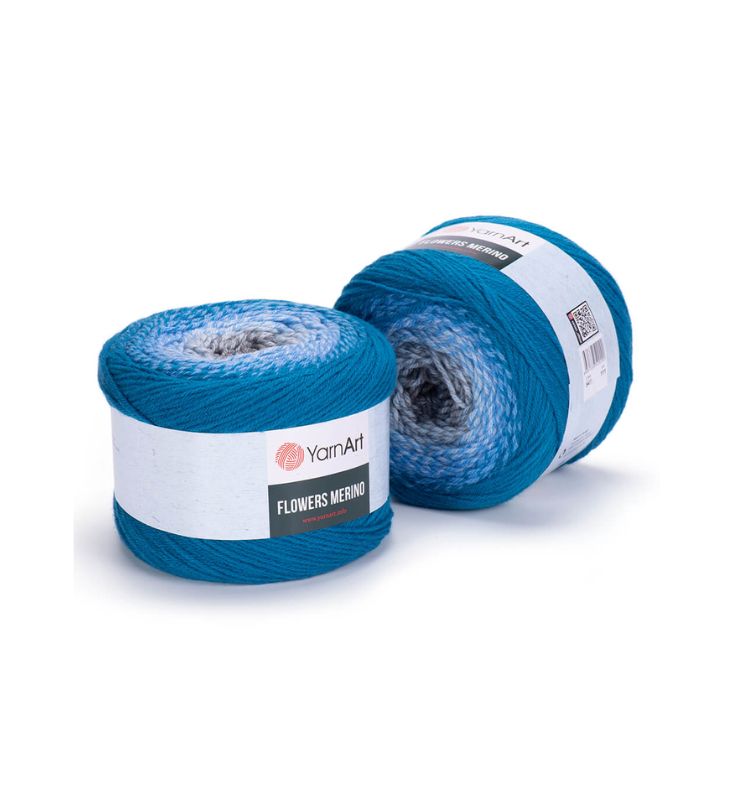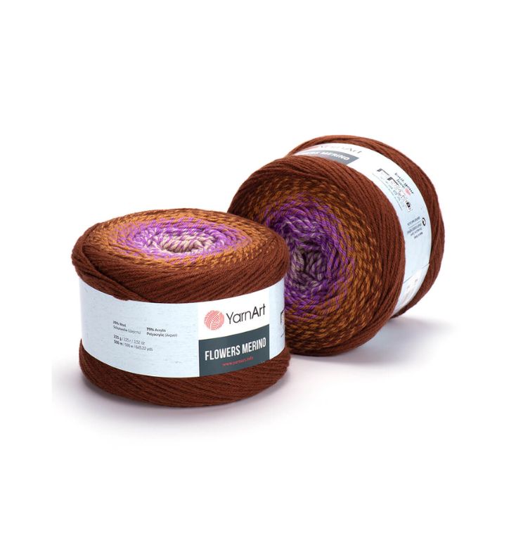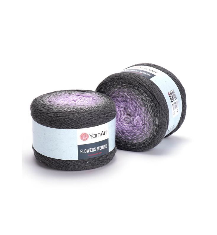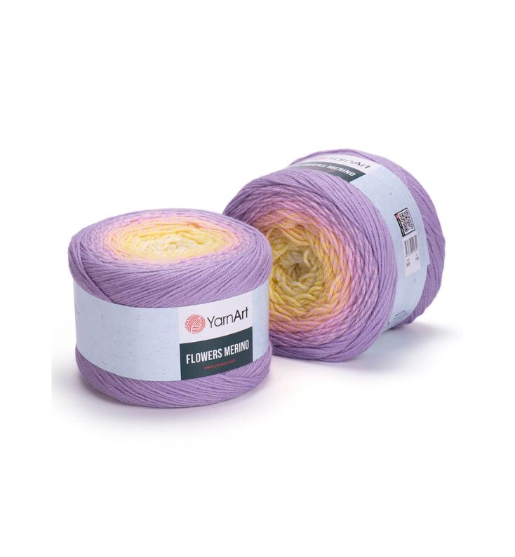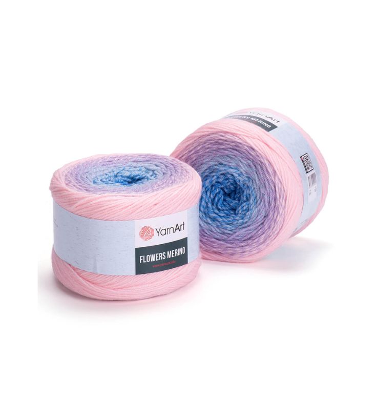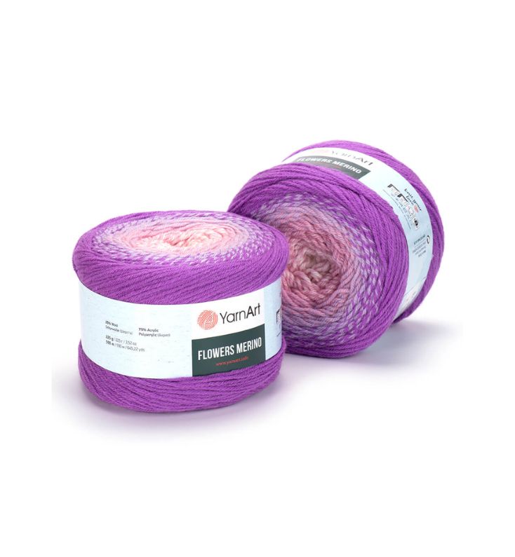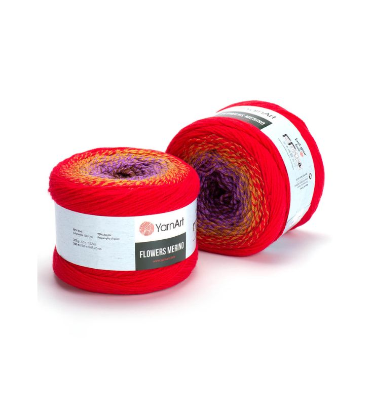 YarnArt Flowers Merino Cake is from a classic acrylic-wool blend with volume and attractive softness beautiful gradient colors. The thickness is universal for knitting warm accessories – hats, scarves, cloaks, as well as for sweaters, cardigans.