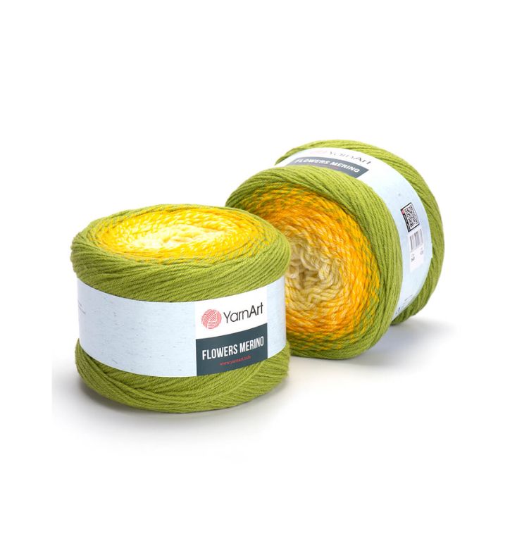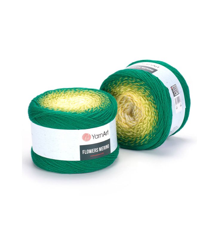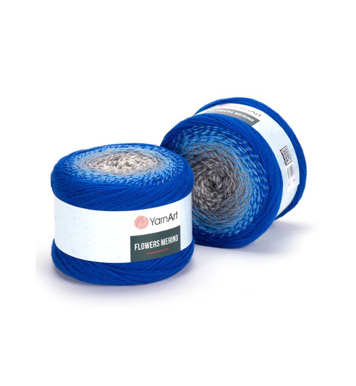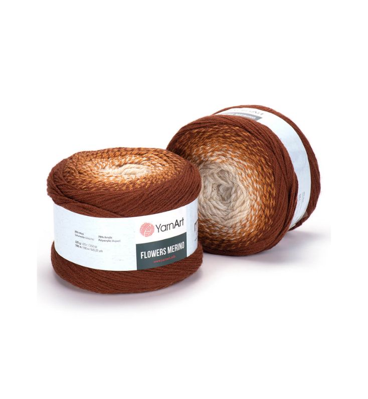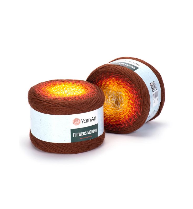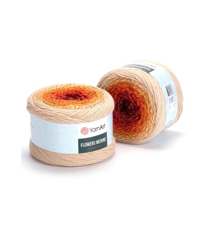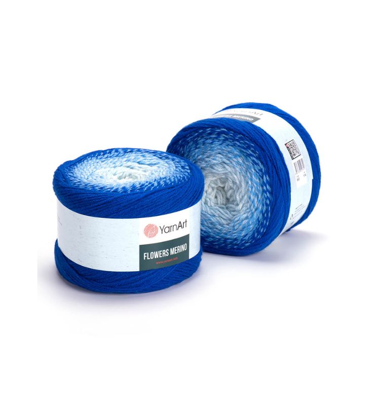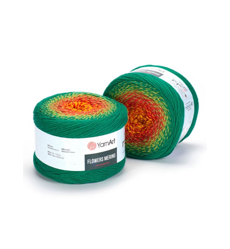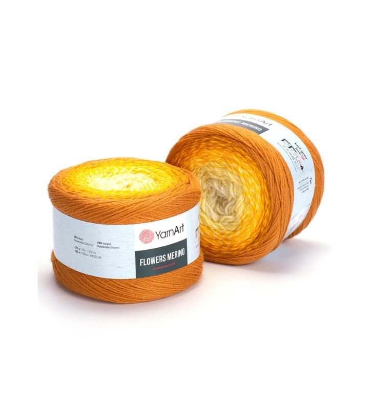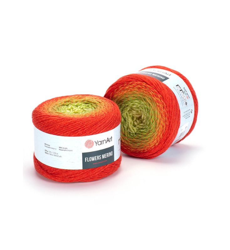 YarnArt Flowers Merino Cake is from a classic acrylic-wool blend with volume and attractive softness beautiful gradient colors. The thickness is universal for knitting warm accessories – hats, scarves, cloaks, as well as for sweaters, cardigans.